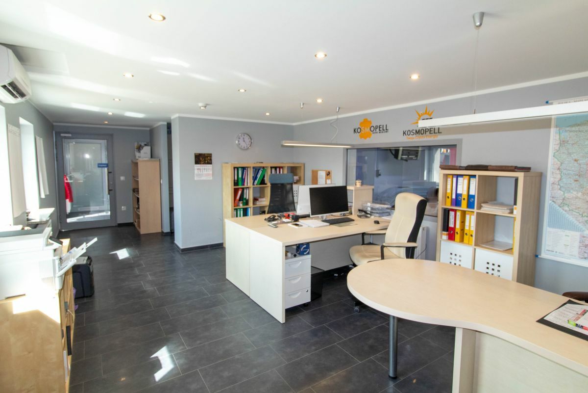 Biura: W budynku znajdują się dwa przestronne biura, które mogą służyć jako miejsce pracy dla kadry zarządzającej, działu administracyjnego lub sprzedaży. Biura są dobrze doświetlone i zapewniają komfortowe warunki do pracy.