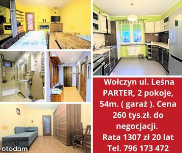 11Słoneczne 54m², 2 pokoje. Parter, GARAŻ pod oknem – Wołczyn, ul. Leśna Opis: Na sprzedaż oferuję przestronne, ...