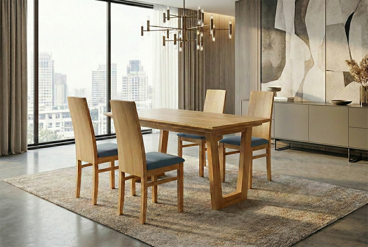 Nowoczesny stół ramowy z okleiny dębowej z kolekcji: 2023 + 4 krzesła (takie jak na zdjęciu)Nogi wykonane z Litego Dębu